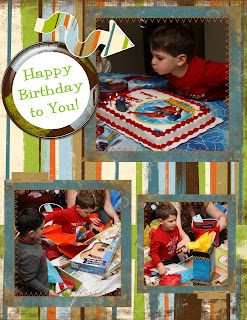 So I hadn't posted any new work recently. It's been pretty crazy around here, but I've decided I just have to spend an hour a night exercising my creativity. I recently purchased a new digital media CD so I thought I'd try it out. This is a birthday party we recently went to. It is 8.5x11. I thought it would be a good size. Easy to print at home and slip into a binder for the mom who can't find the time to scrapbook with paper. I hope you enjoy it. I know I do!